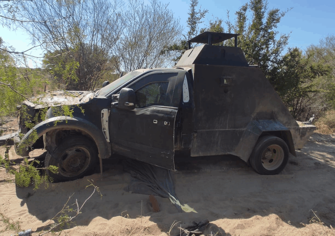 Agentes de la Guardia Nacional, en Tamaulipas, aseguraron camiones monstruo, un arsenal y artefactos explosivos improvisados, en un camino de terracería, en los límites con Nuevo León.